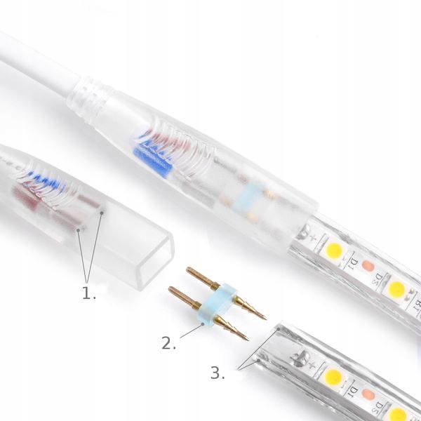 Zasilanie 230V upraszcza montaż, ponieważ nie wymaga transformatora 12V. Co więcej, taśma może pracować nawet do 100 metrów w jednym odcinku, dlatego ograniczasz ilość łączeń.