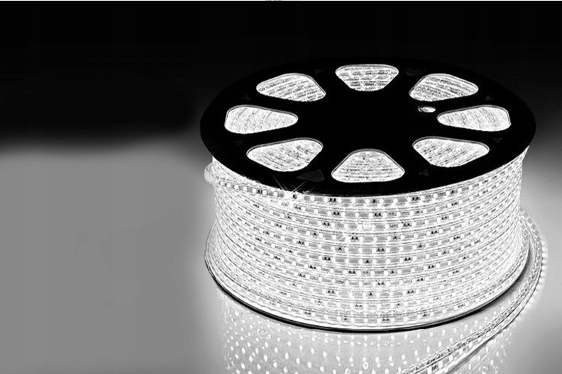 Zasilanie 230V upraszcza montaż, ponieważ nie wymaga klasycznego transformatora 12V. Jednocześnie taśma może pracować nawet do 100 metrów w jednym odcinku, a więc ograniczasz ilość łączeń.