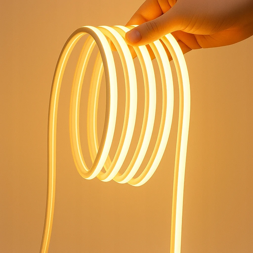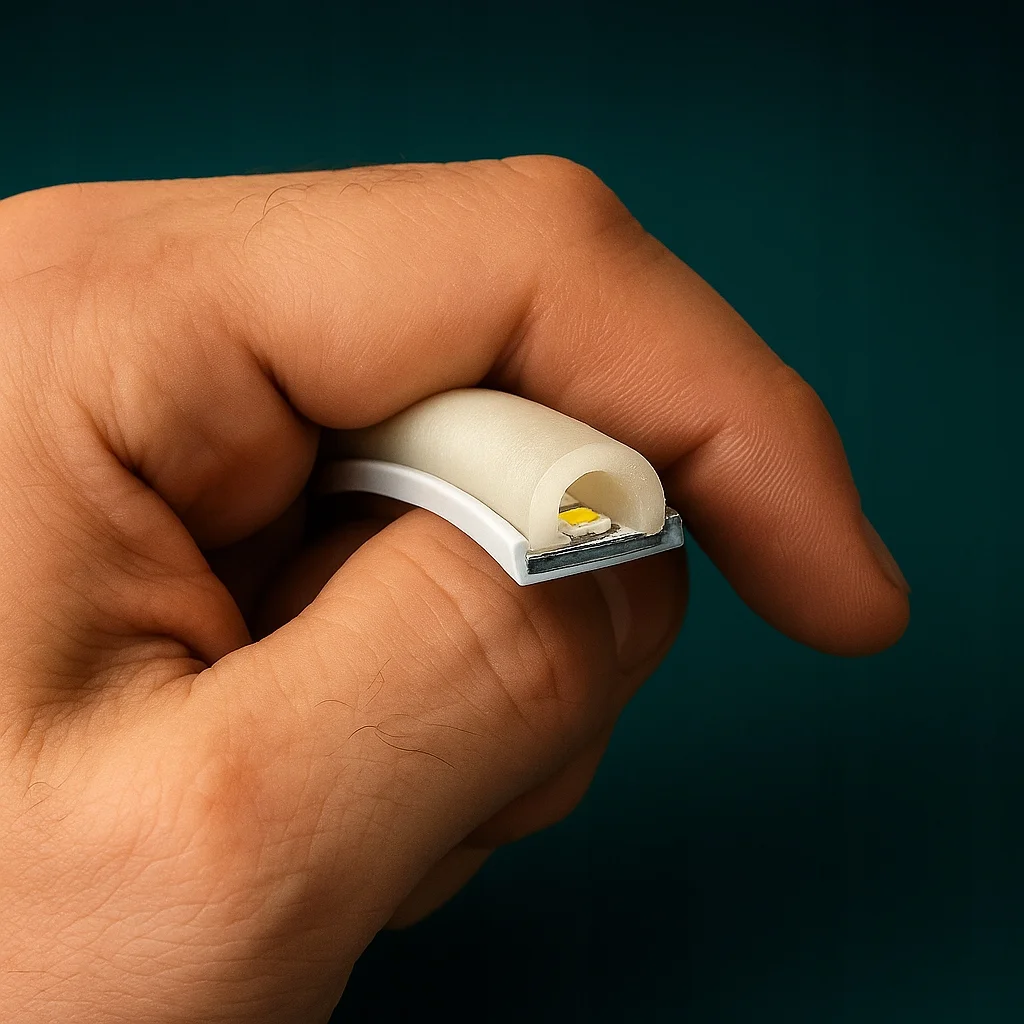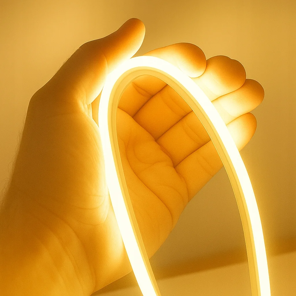 Producent zastosował diody SMD 2835 w gęstości 240 LED na metr, dlatego neon świeci bardzo równomiernie. Ponadto mleczna osłona rozprasza światło, więc linia pozostaje gładka i estetyczna.