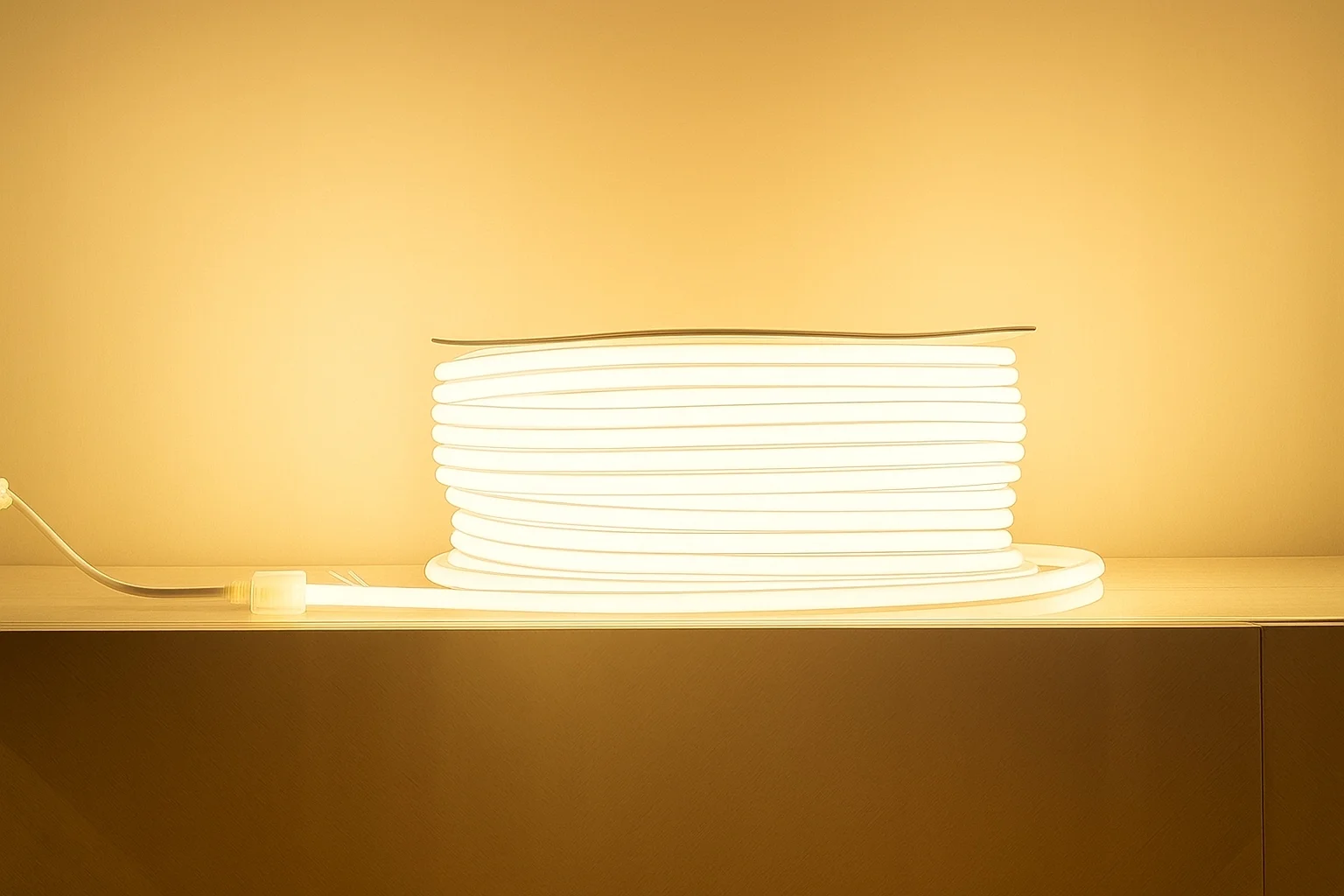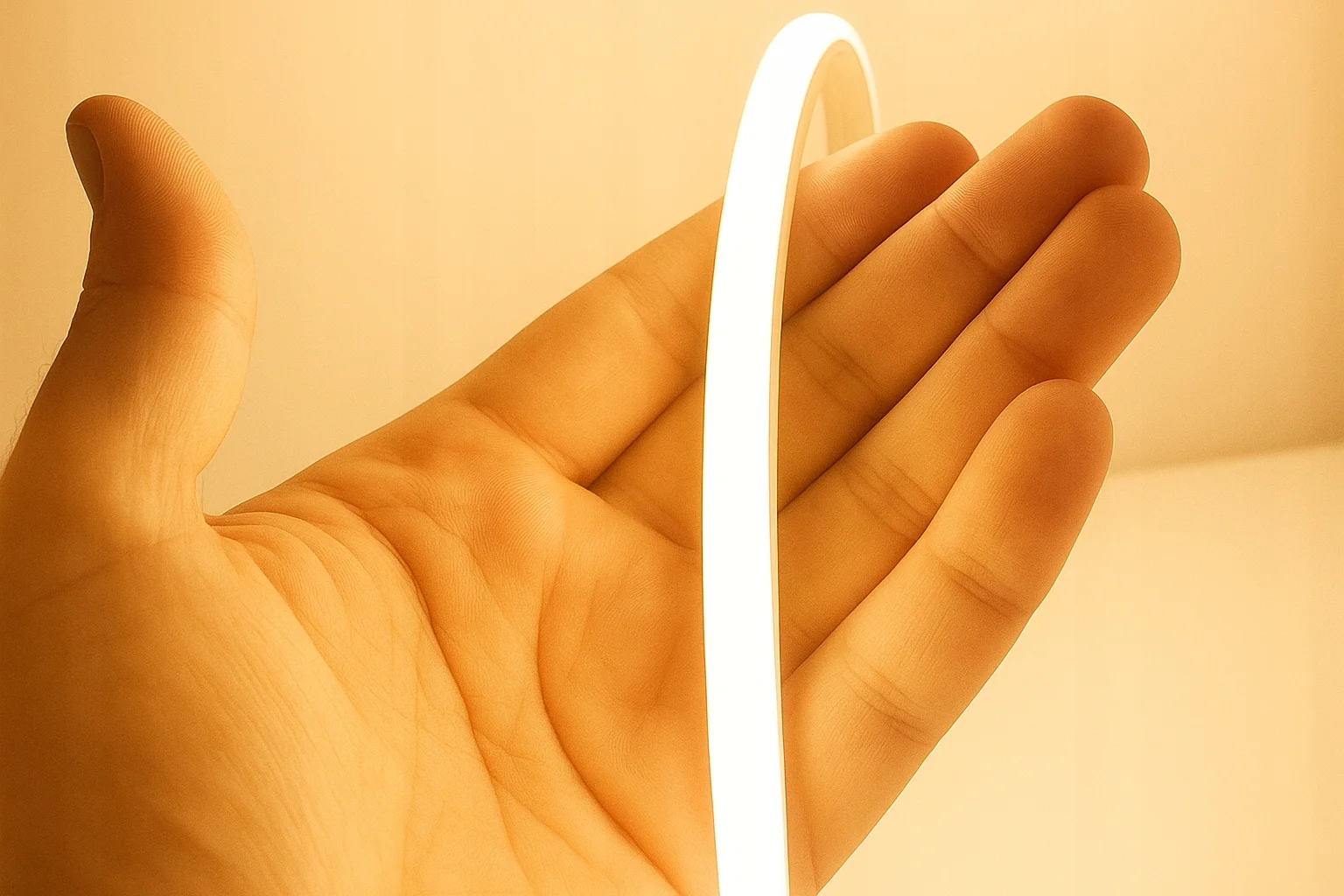 NEON LED 230V 240 LED/m 10mm IP65 ciepła biel 3000K zapewnia estetyczną i ciągłą linię światła. Diody pozostają ukryte w mlecznej osłonie, dlatego nie widać punktów LED. Dzięki temu neon wygląda nowocześnie i bardzo elegancko.