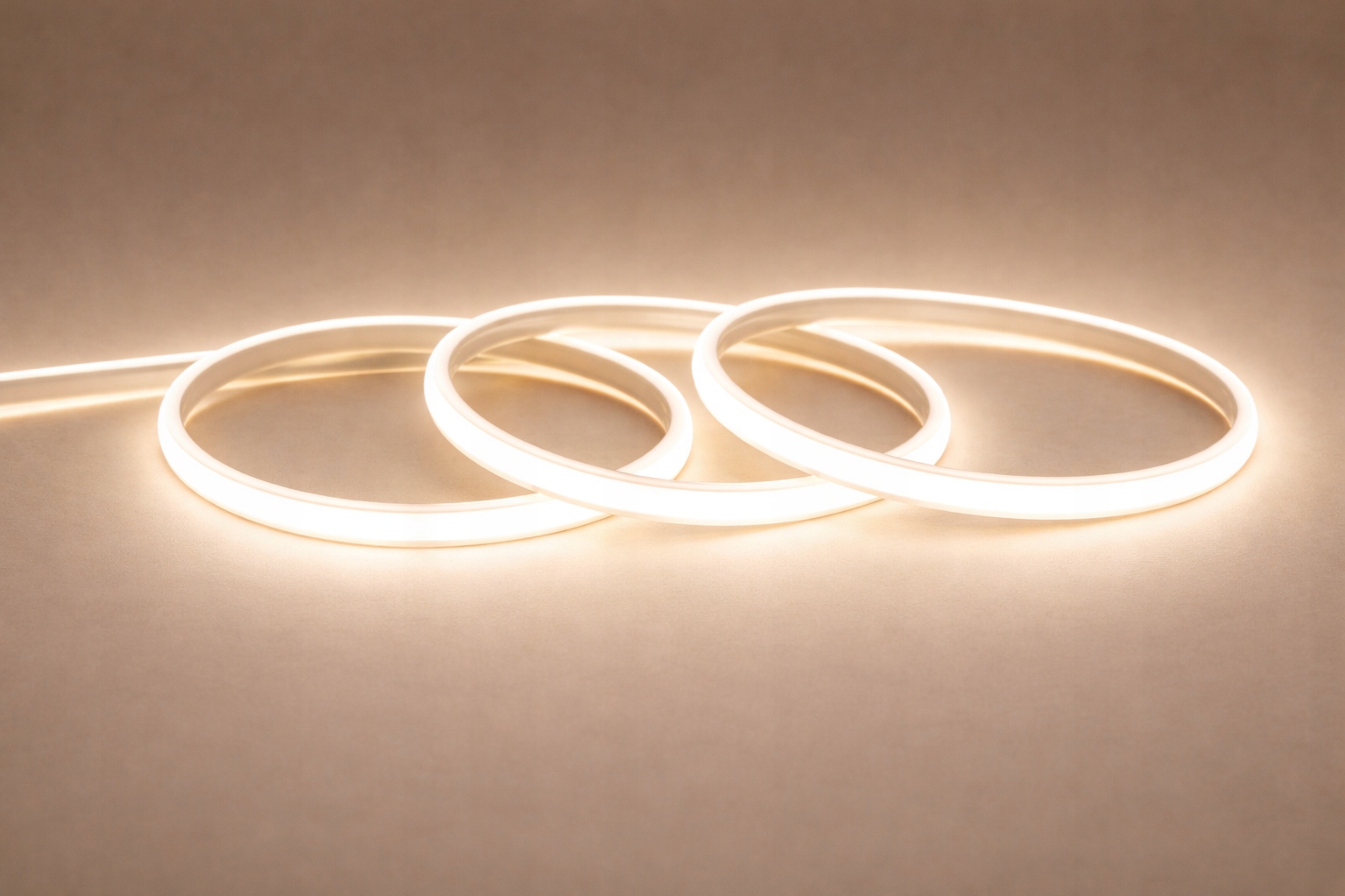 Taśma NEON LED COB 24V mleczna 4000K IP68 to profesjonalne oświetlenie liniowe do wnętrz i na zewnątrz. Dzięki technologii COB światło jest całkowicie jednolite. Dodatkowo mleczna osłonka silikonowa eliminuje widoczne punkty LED.