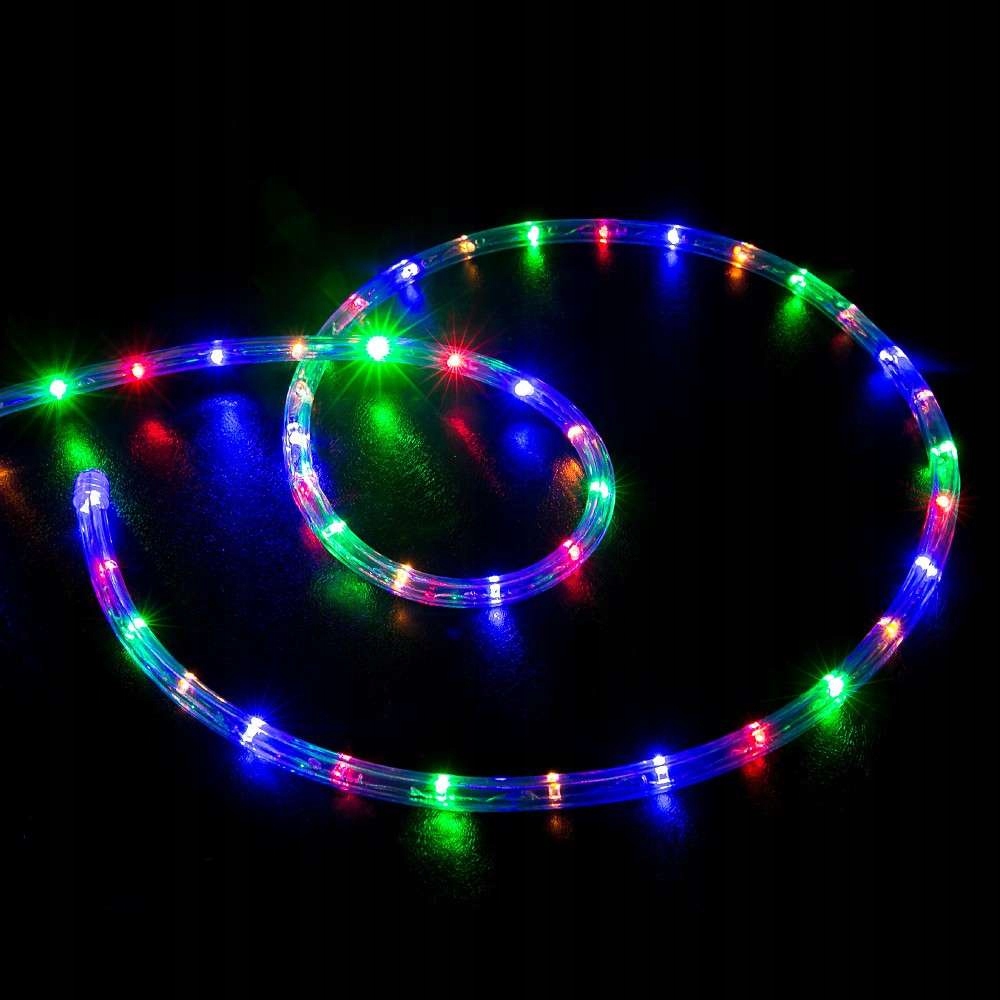 Wąż świetlny LED multicolor 24 LED/m to efektowna dekoracja świetlna do domu i ogrodu. Świeci wielokolorowym światłem, dlatego idealnie sprawdzi się na drzewku, elewacji czy w witrynie sklepu. Zasilanie 230V zapewnia stabilną pracę, jednak wymaga odpowiedniego sterownika.