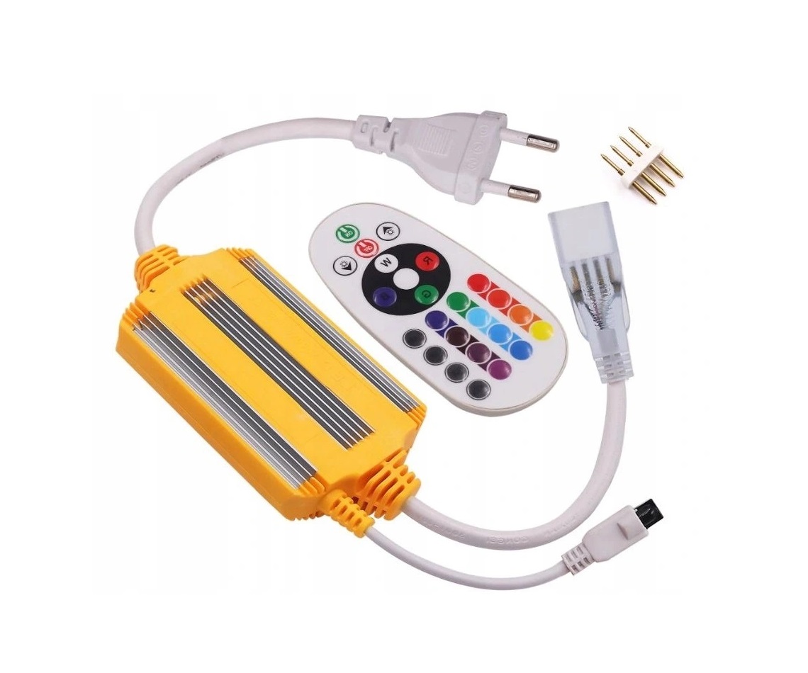 Stabilizator do Neon LED Flex RGB 230V to funkcjonalne rozwiązanie do zasilania oraz sterowania taśmami RGB. Dzięki niemu podłączysz neon szybko i bez problemów, a jednocześnie zyskasz pełną kontrolę nad kolorem światła. Co ważne, urządzenie pozwala nie tylko zasilać taśmę, ale również wygodnie nią sterować.