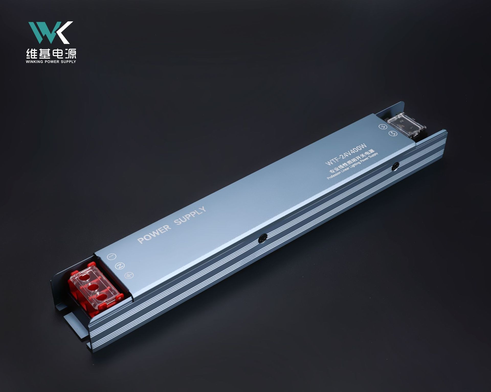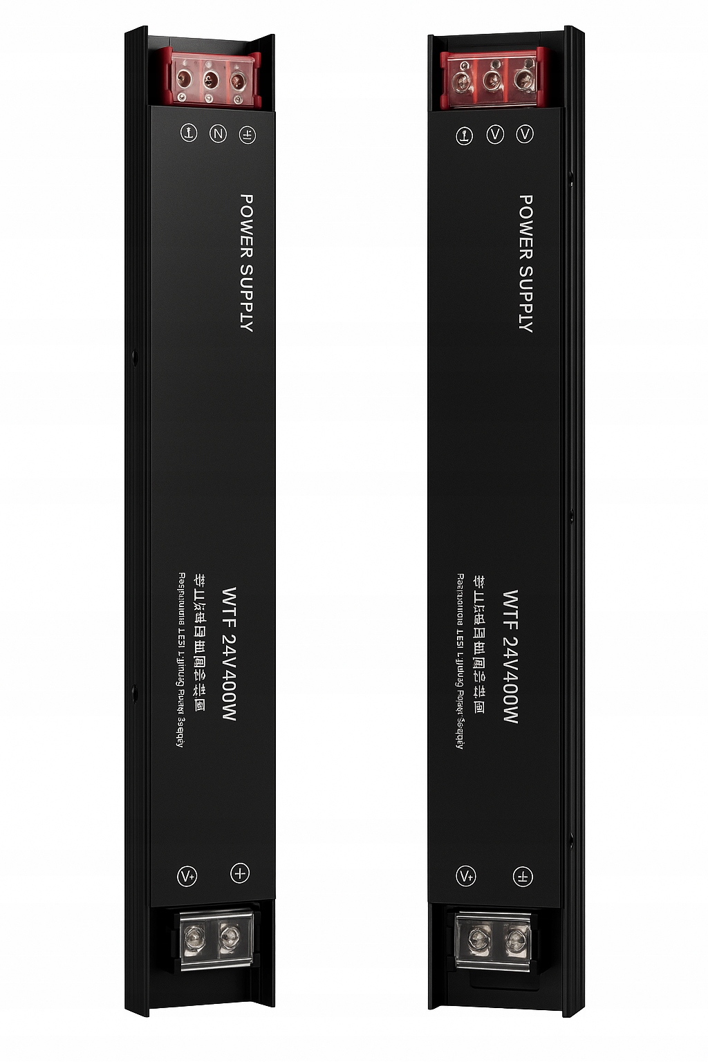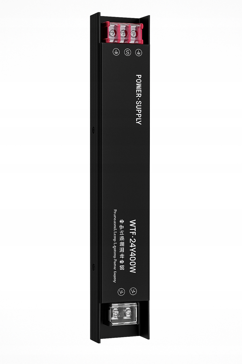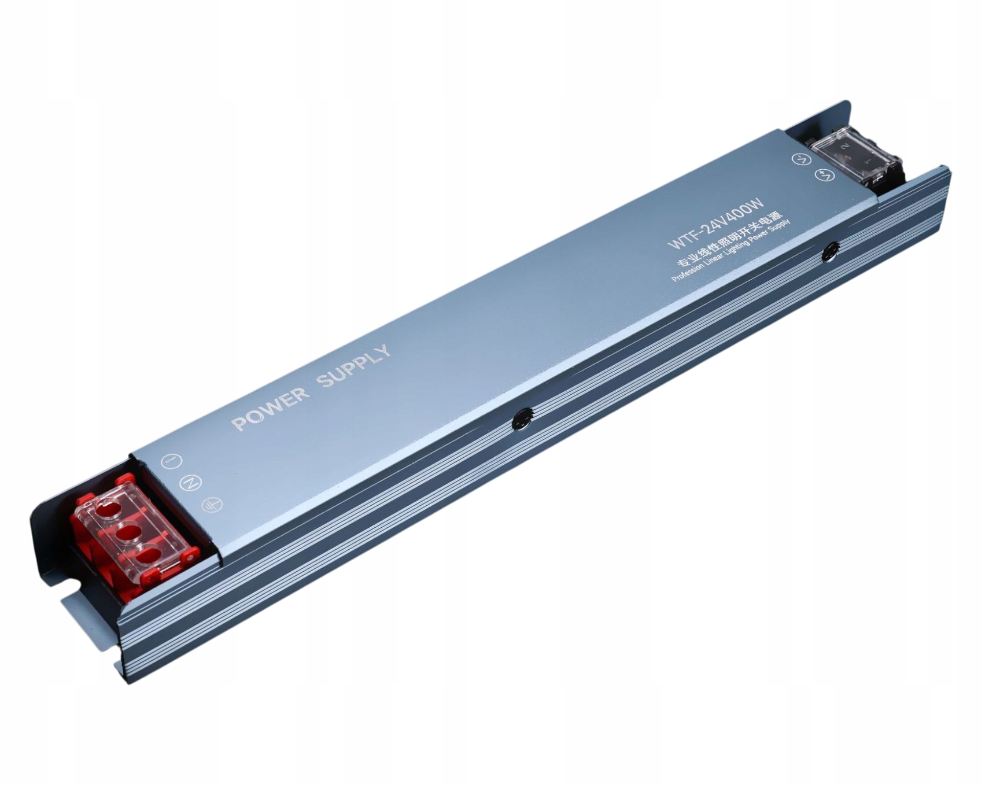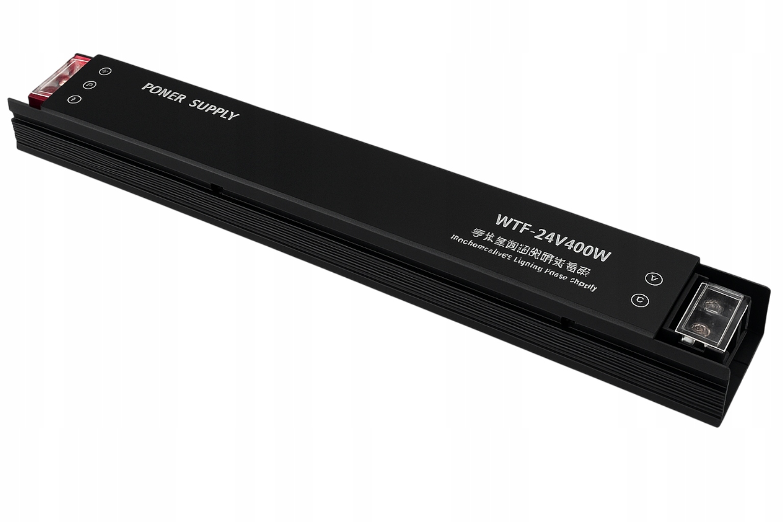 Zasilacz LED 24V 400W Slim WTF-24V400W to wydajne i stabilne źródło zasilania do taśm LED oraz neonów 24V DC. Sprawdzi się w domu, ale również w projektach komercyjnych. Dzięki smukłej konstrukcji typu SLIM bez problemu zmieści się w profilach LED, szafkach oraz sufitach podwieszanych.