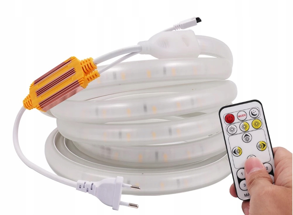 Pilot IR pozwala sterować jasnością oraz trybami pracy. Możesz zmieniać barwę światła, a także wybierać efekty świecenia. To rozwiązanie zwiększa funkcjonalność instalacji, ponieważ dopasujesz oświetlenie do sytuacji.