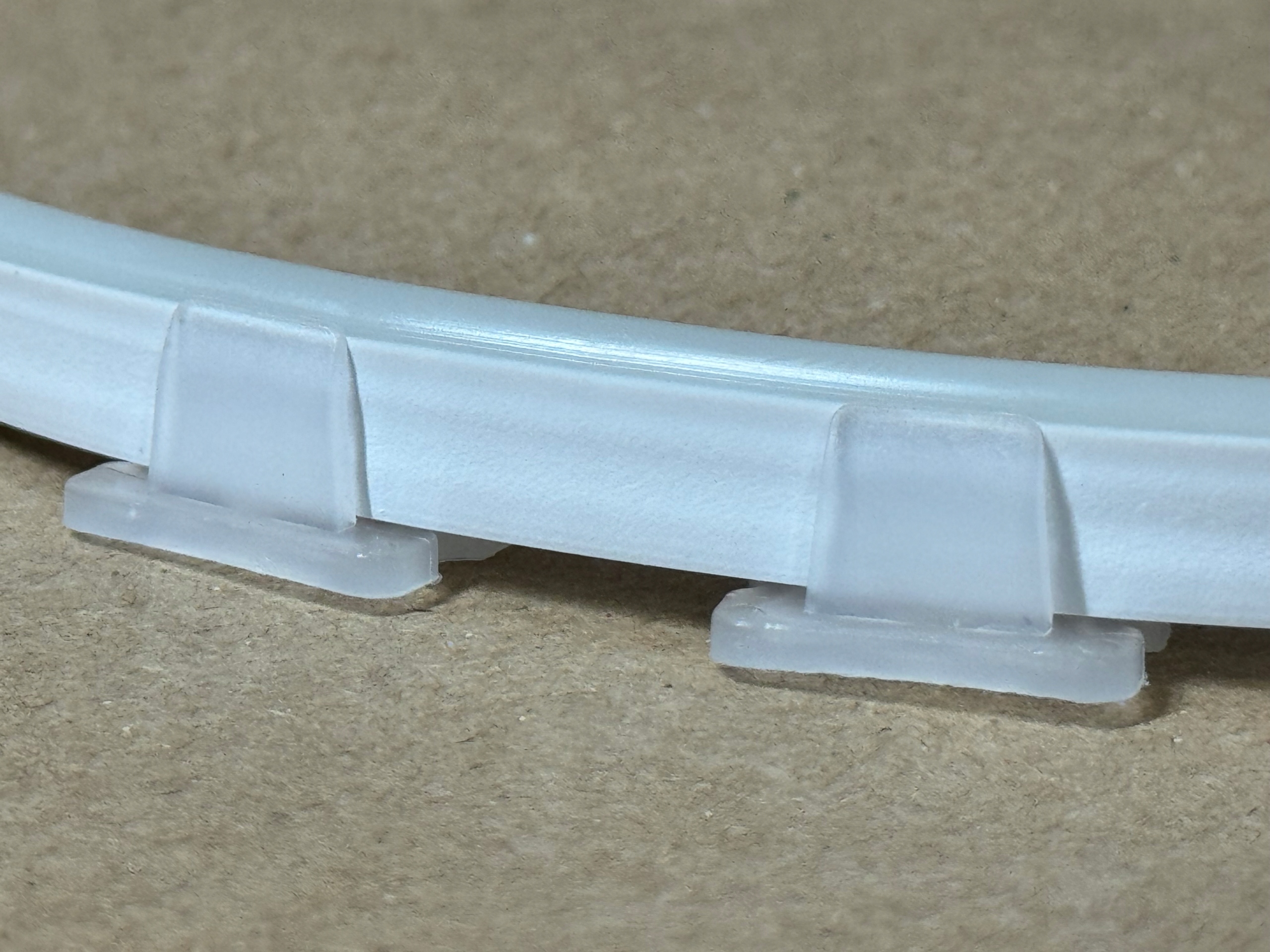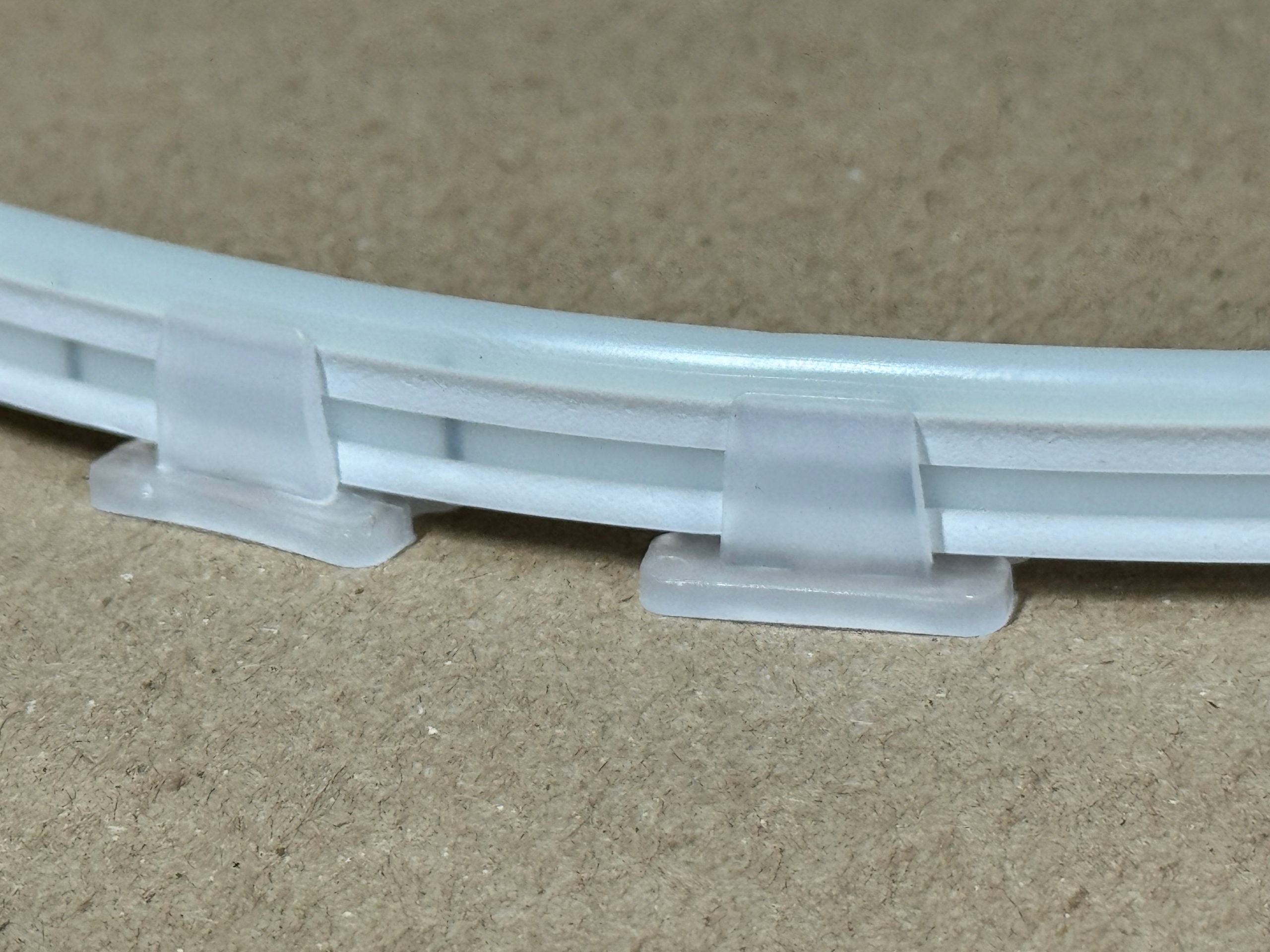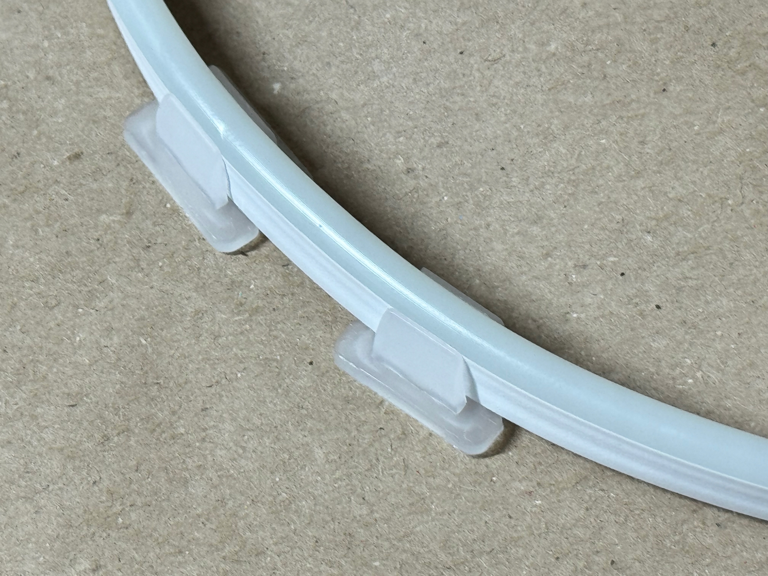 Uchwyty zostały zaprojektowane do neonów LED FLEX 12V, dlatego zapewniają ich prawidłowe prowadzenie. Dzięki rowkowi 4–5 mm dobrze obejmują taśmę, więc utrzymują ją w stabilnej pozycji. To rozwiązanie zapobiega przesuwaniu oraz odkształceniom instalacji.