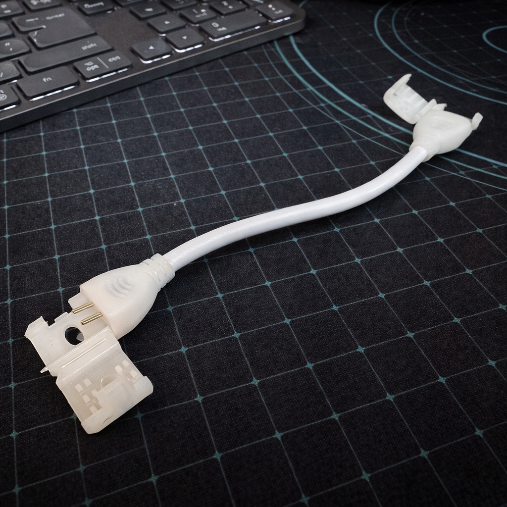 Elastyczny przewód pozwala swobodnie połączyć odcinki taśmy LED. Dlatego łatwo ominiesz przeszkody lub zmienisz kierunek instalacji. Jednocześnie montaż nie wymaga lutowania, więc prace instalacyjne są znacznie prostsze.
