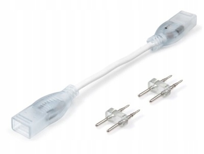 Model jest kompatybilny z taśmami LED 230V typu 5050, 2835 oraz 5630, dlatego sprawdzi się w większości popularnych instalacji oświetleniowych. W zestawie znajdują się dwa konektory, które służą do podłączenia złączki do taśmy. Montaż jest szybki, jednak należy zachować ostrożność, ponieważ nieprawidłowe wbicie bolców może spowodować zwarcie.