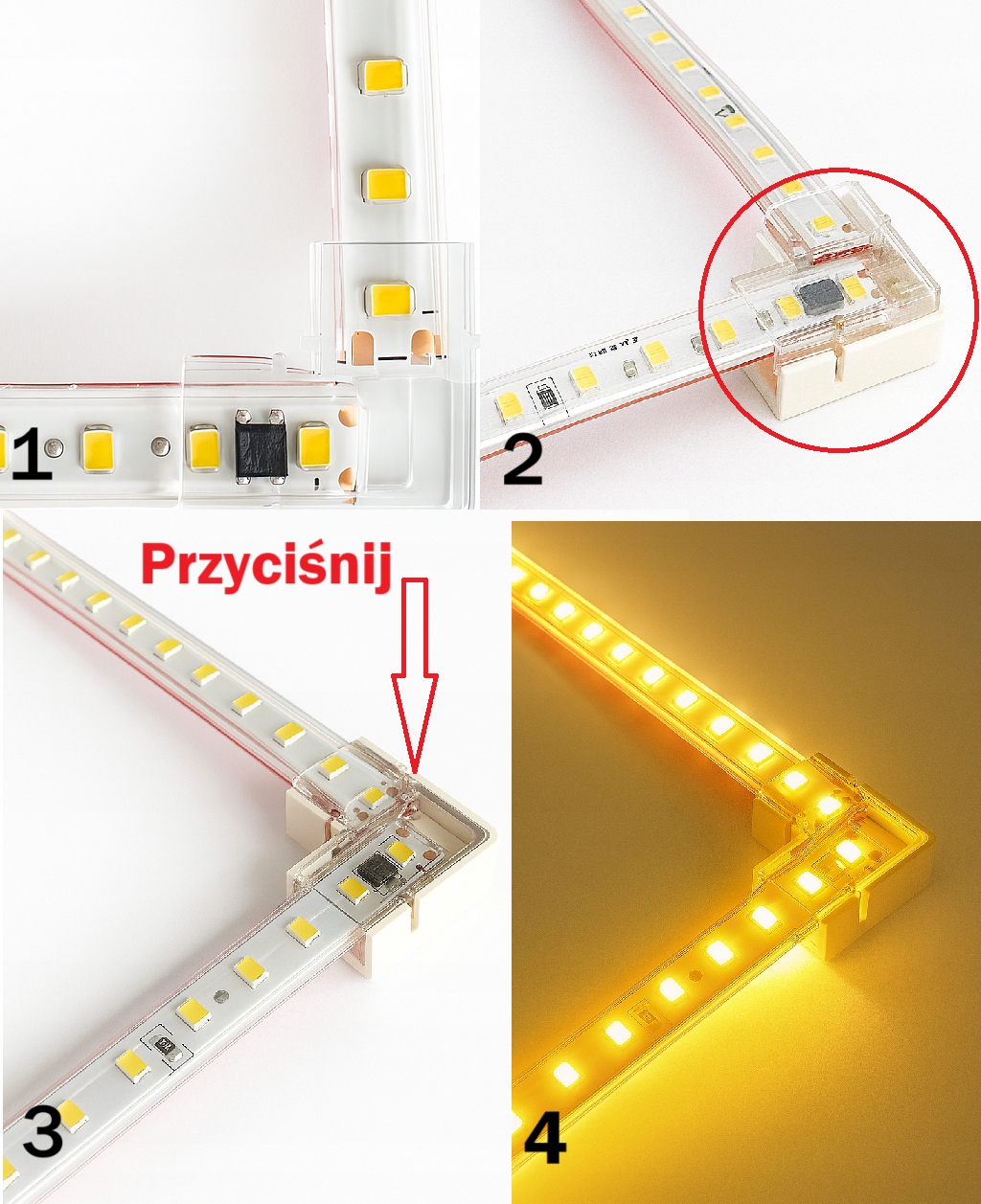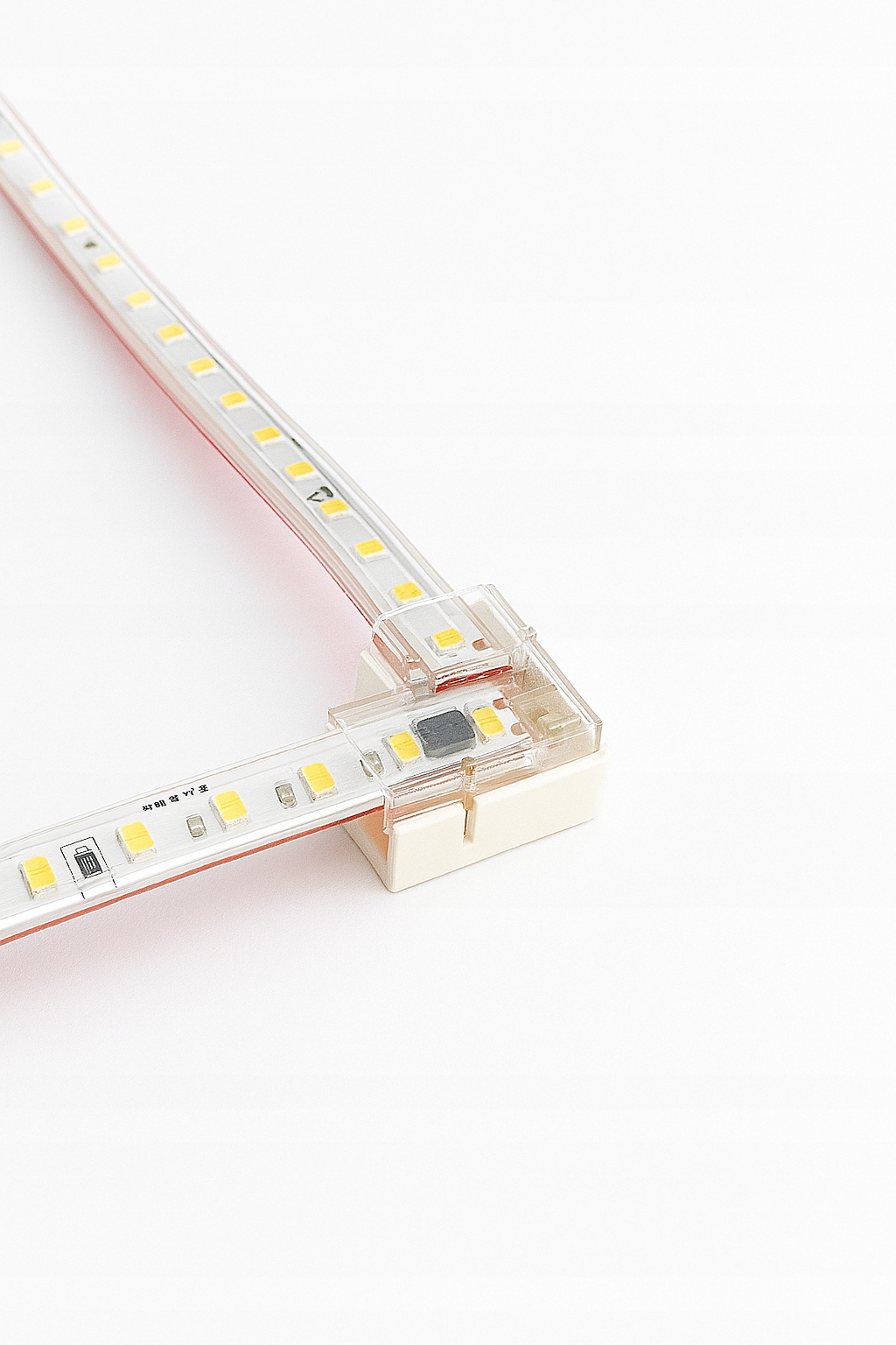• Łączy taśmy LED COB 230V pod kątem 90°.